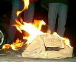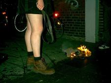 17. NOVEMBER 2002: Spektakuläre Angelegenheit! In der Nacht zu Sonntag kam es in der münsterischen Innenstadt zum Brand einer alten Cordhose! Ein ambitionierter Anglist/Slavist/Polonist aus Ascheberg feierte mit diesem Zeremoniell den Abschied vom Junggesellendasein. TN Online dokumentiert das Ereignis mit einem Bild-Mosaik!