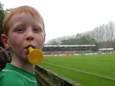 Der kleine Junge mit der Tröte. Zeigte in des Maintainers Stammkneipe, wie biegsam er ist, und auf dem Sportplatz in Rheine, was er von Tuten und Blasen versteht. |