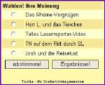 20. JANUAR 2007: Innovation bei TN Online: Das beliebte Webcam-Bild, das entweder Thorsten Neuhaus persönlich oder aber Impressionen aus seinem spannenden Lebensumfeld zeigt, gibt es seit heute in veränderter Form. "Einige TN-Online-Nutzerinnen kamen mit dem bisher verwendeten Java-Applet nicht klar, da musste ich reagieren", so Neuhaus. Die neue Lösung sei zwar popeliger, dafür bekomme der Betrachter aber auch ein großformatigeres Foto geboten, hob der 36-jährige Webseitenbetreiber hervor.