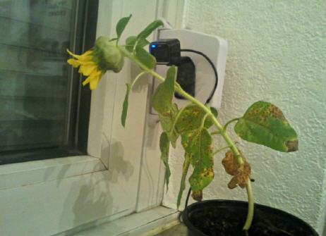 21. APRIL 2012: Die TN-Online-Webcam-Sonnenblume ist weltweit beliebt. "Leider jedoch wurde sie", so Thorsten Neuhaus, "in den vergangenen Tagen durch starken Schimmelbefall der offenbar minderwertigen Blumenerde an ihrem eindrucksvollen Wachstum gehindert." Nachdem aufmerksame Webcam-Betrachter den leidenschaftlichen Pflanzenfreund auf den Missstand hingewiesen hatten, setzte Neuhaus sich umgehend mit befreundeten Biologen und Landschaftsgärtnern in Kontakt. "Fortan dürfte die Sonnenblume gedeihen, wie wir uns alle es vorstellen", kommentierte der entfernte Verwandte des HSV-Ersatztorwarts erleichtert.