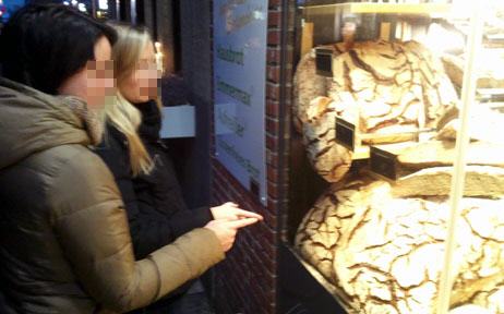 16. DEZEMBER 2012: Junge Frauen aus Hessen bestaunen riesenhafte westfälische Brote.