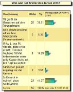 10. JANUAR 2017: Endlich ist das Ergebnis da! Nach einem dramatischen, nie da gewesenen Finale steht der Brüller des Jahres 2016 fest. 41,07 Prozent aller Teilnehmer votierten für den Sieger! "Ich freue mich insbesondere, dass es bei der Gesamtzahl der abgegebenen Stimmen einen Allzeit-Rekord gab", erklärte Thorsten Neuhaus.